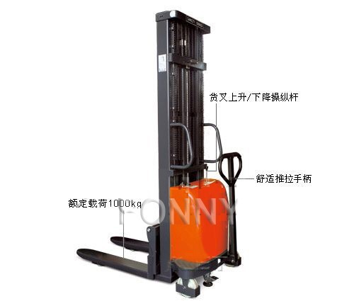 • 具有裝卸和短距離運輸貨物功能的兩用半電動堆高車;