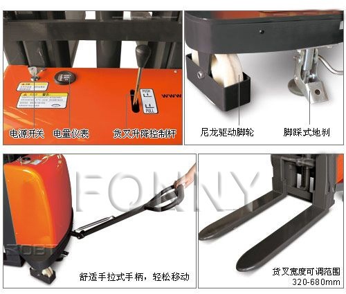 • 具有裝卸和短距離運輸貨物功能的兩用半電動堆高車;