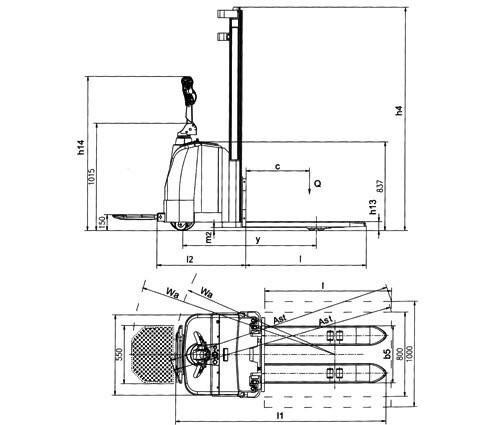 貨叉下降后高度(h13) |