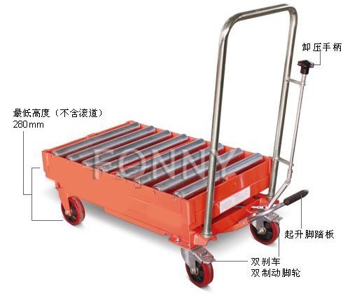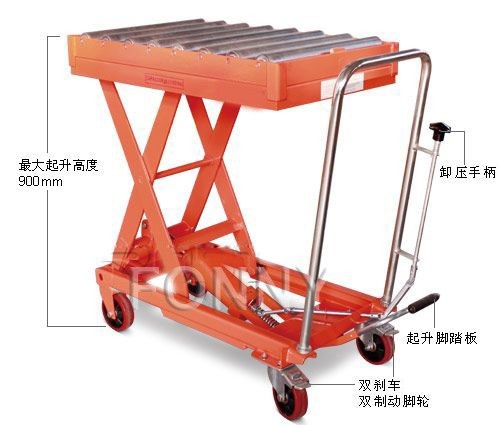 • 通過(guò)腳踏式液壓泵工作,方便地使平臺(tái)起升至所需高度;
